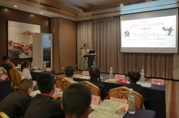 虽然本次夏令营招生工作较晚(6月底开始招生),很多小朋友和家长们都早已做好了假期学习和游玩规划的前提下,依然报名了来自省内和全国其它地区30多位小朋友,其中有的是退掉了其他的学习班和夏令营来参加此次太极夏令营,这让本次夏令营的所有工作人员倍受鼓舞。。。。。。开营仪式在精彩的节目和轻松愉快的氛围中顺利进行。营员代表曹雅雯上台发言和王秋桐小朋友带来的笛子演奏,赢得了台下的热烈掌声。